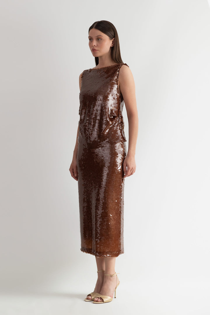 BLUZ KAHVE PAYET
