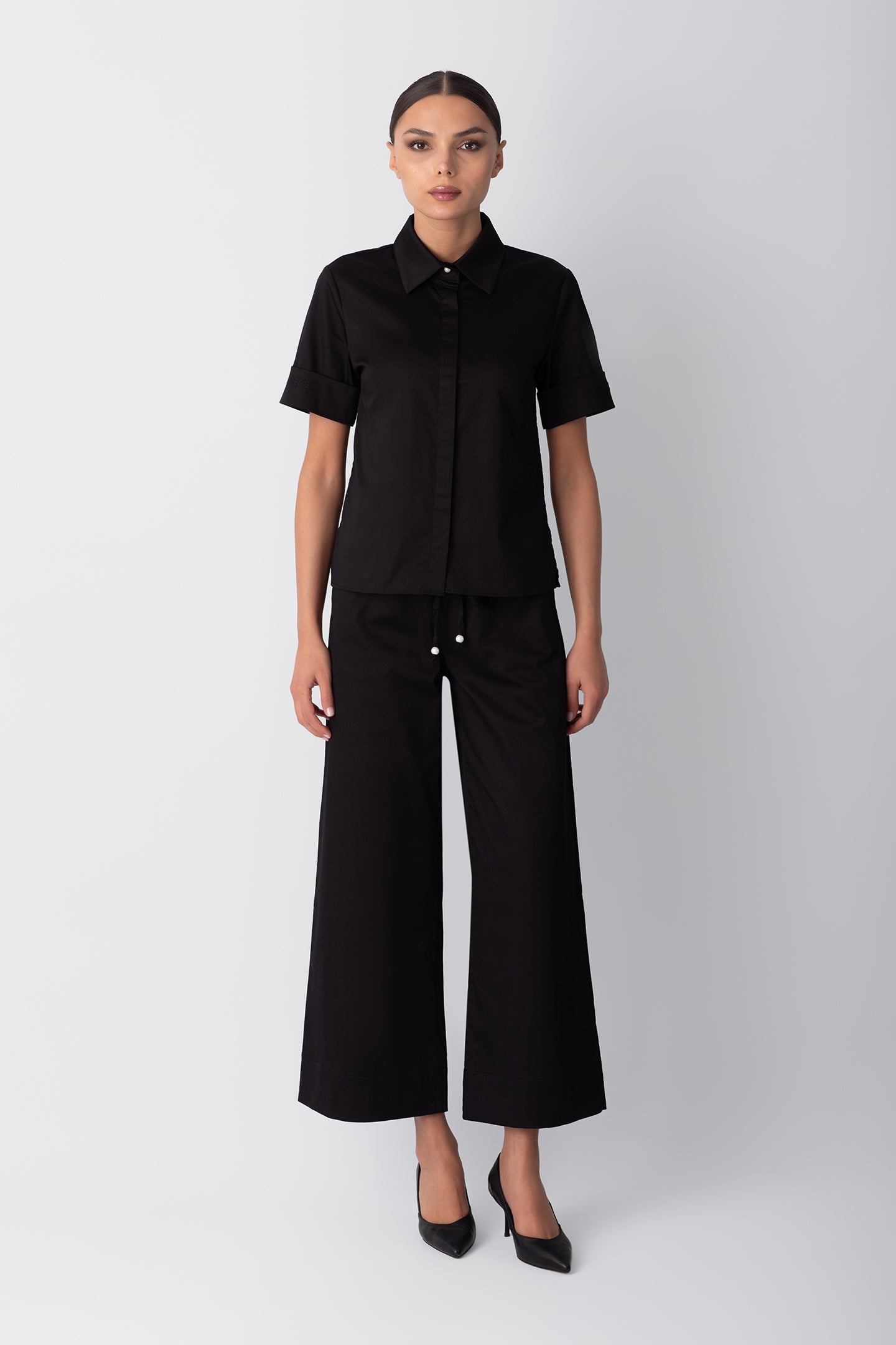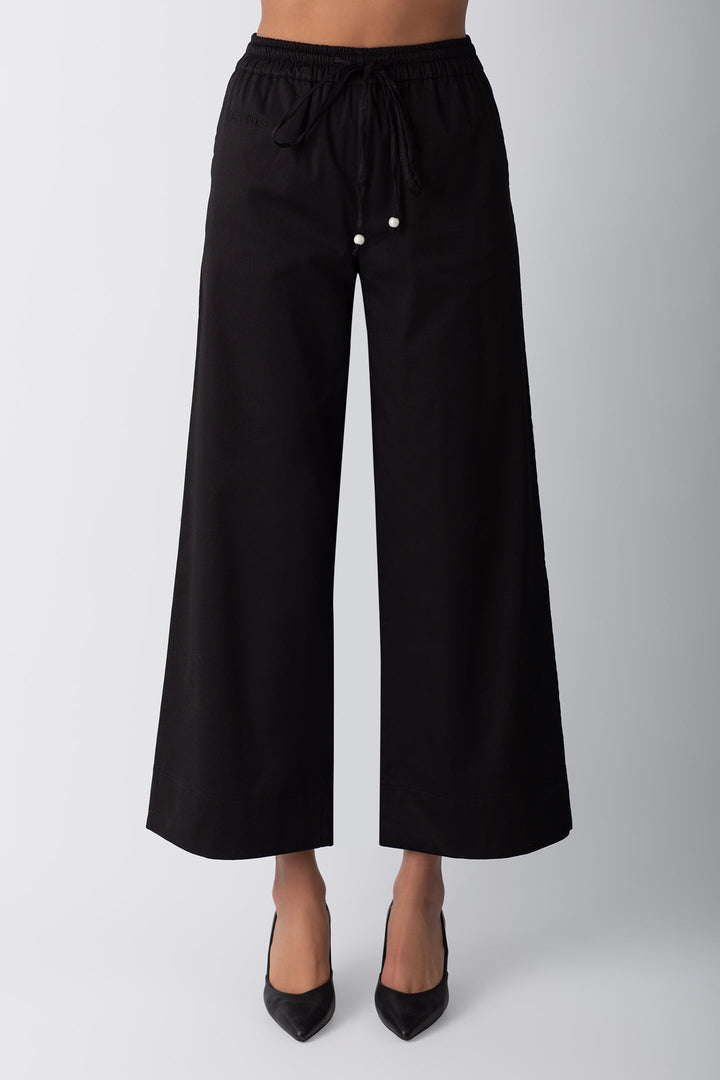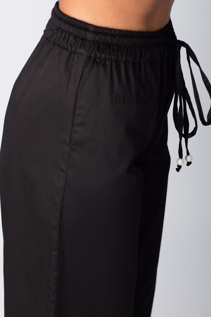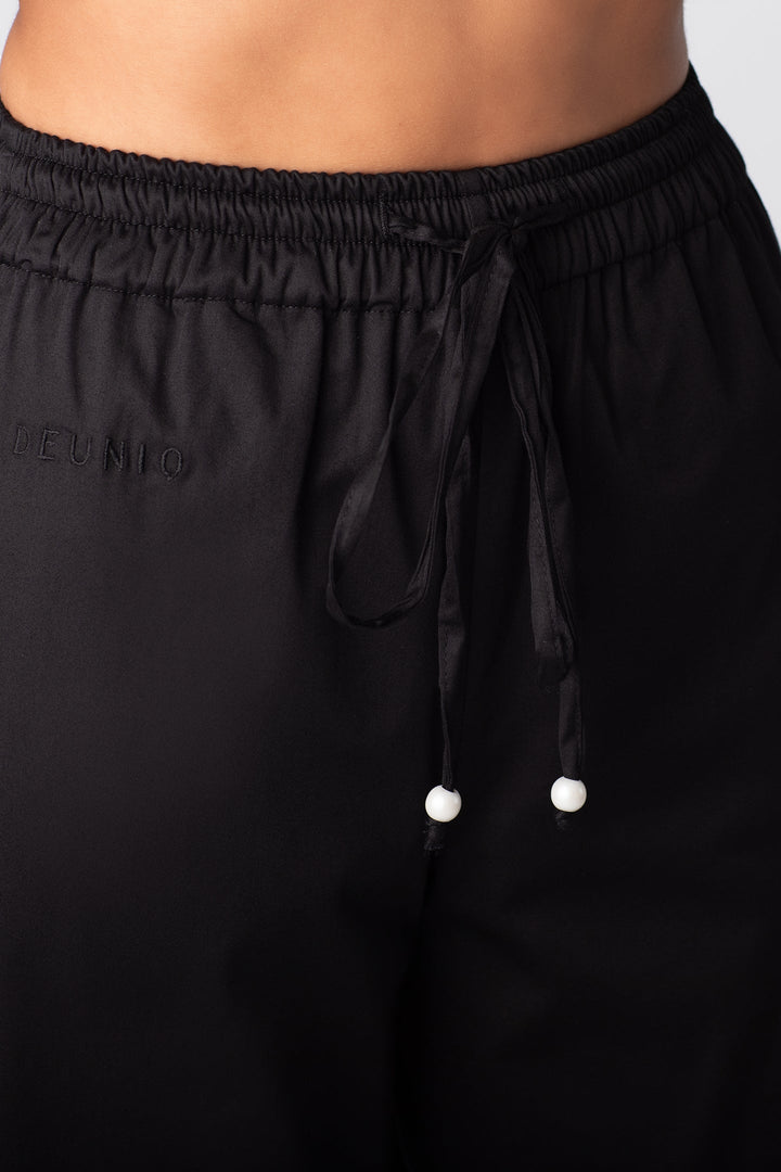 NAKIŞLI POPLİN SİYAH PAÇASI BOL PANTOLON