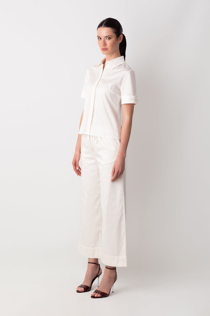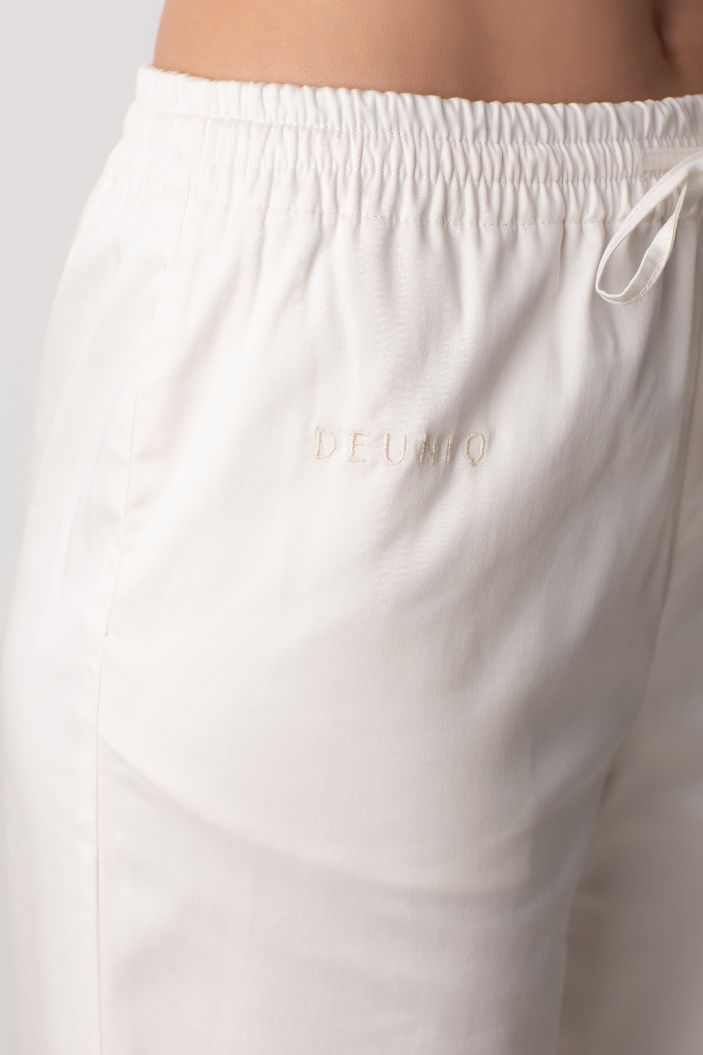 NAKIŞLI POPLİN BEYAZ PAÇASI BOL PANTOLON