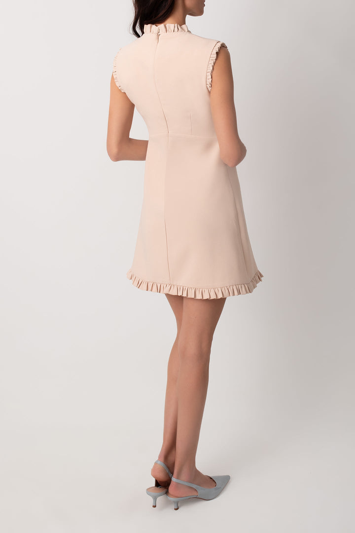 HAKİM YAKA FIRFIRLI KREM ELBİSE