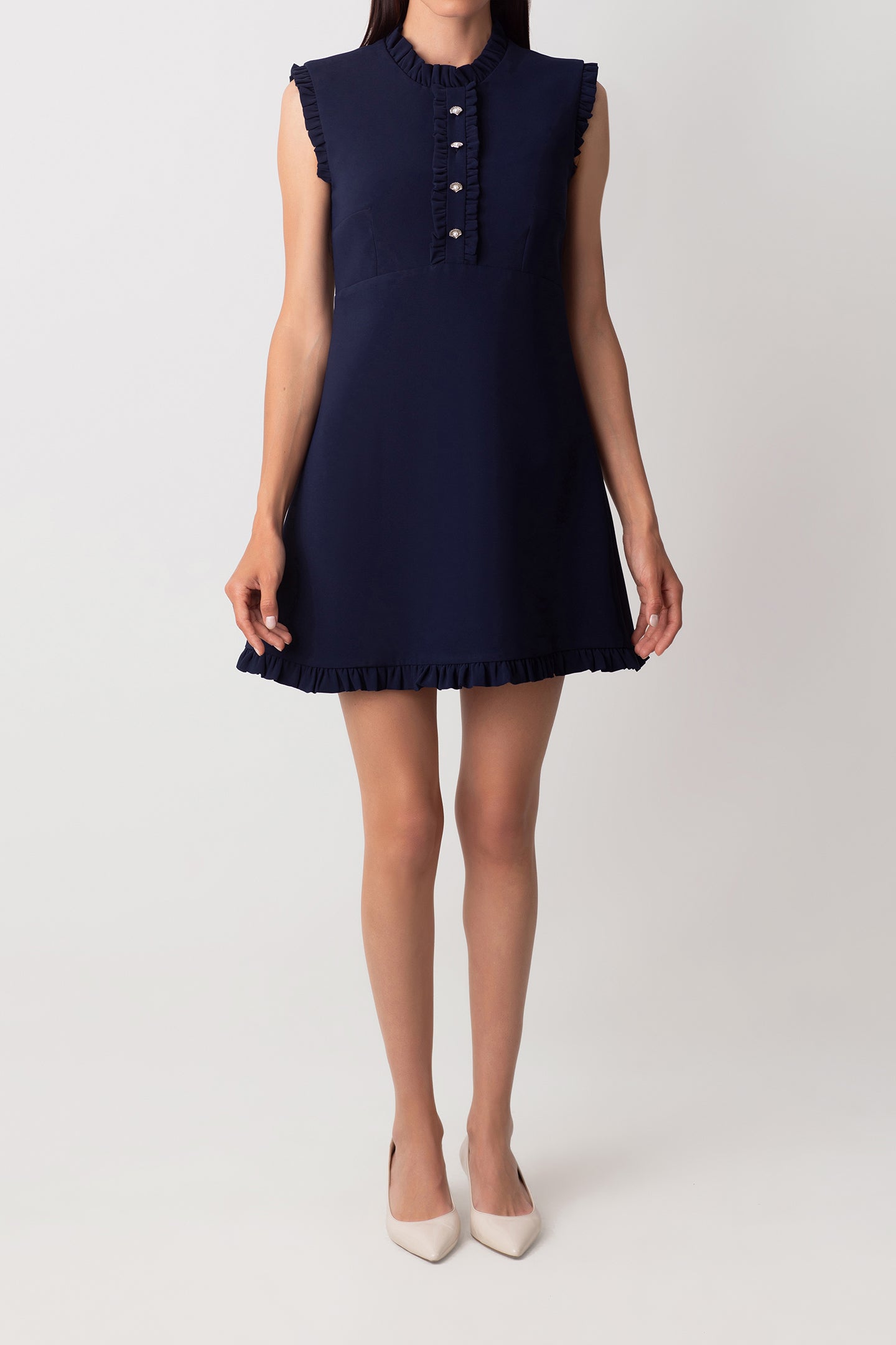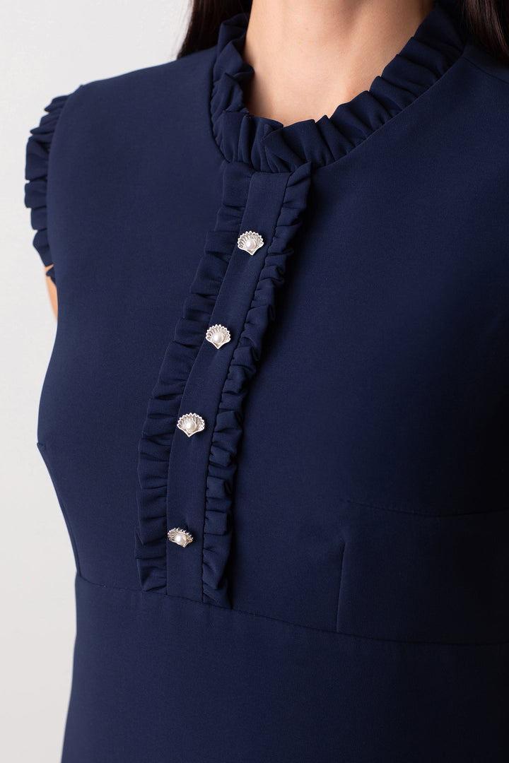 HAKİM YAKA FIRFIRLI LACİVERT ELBİSE