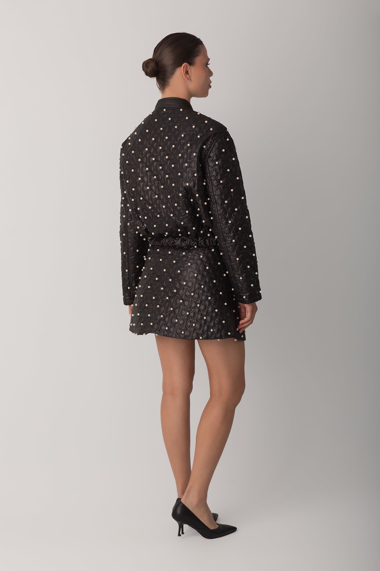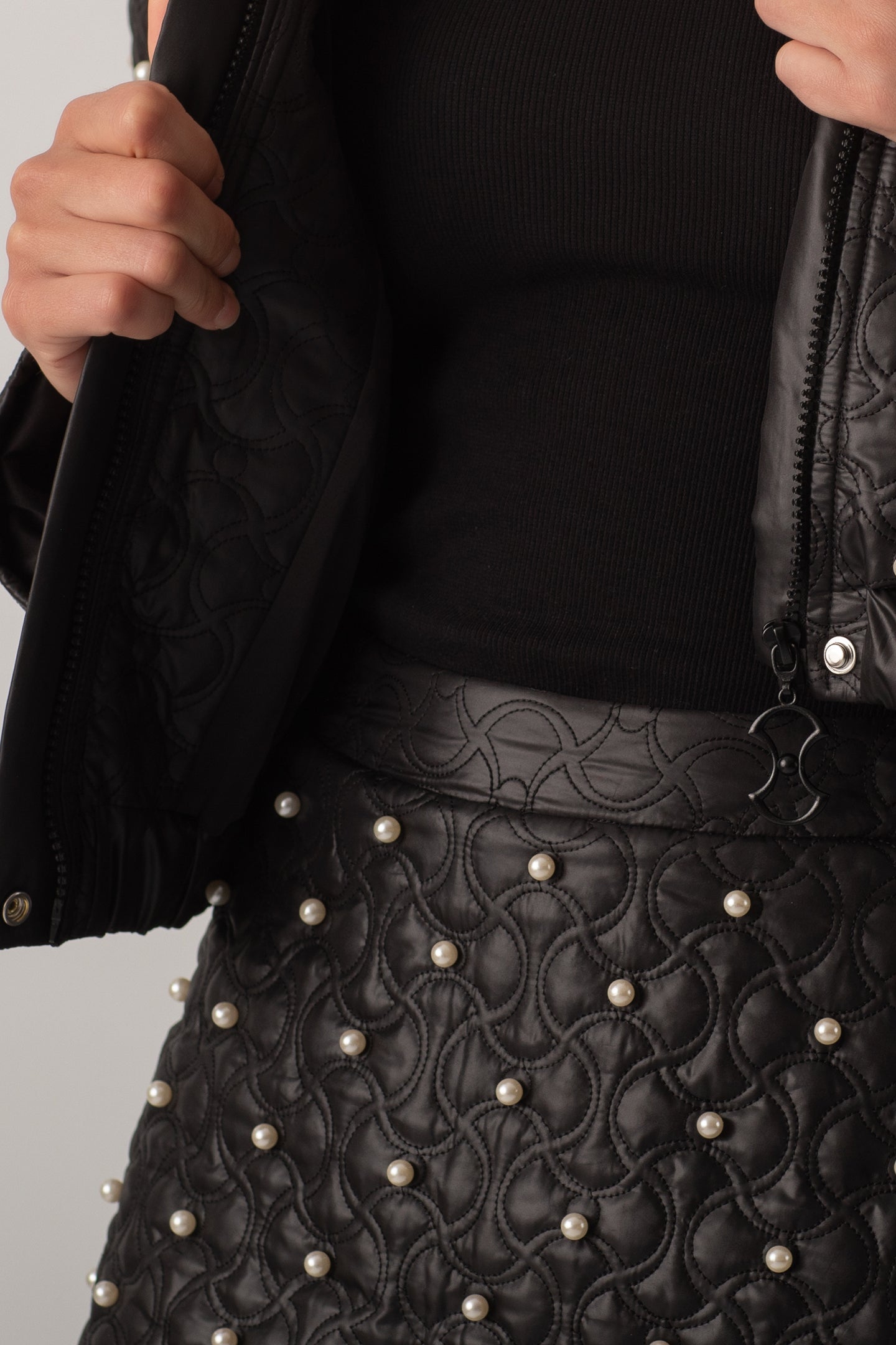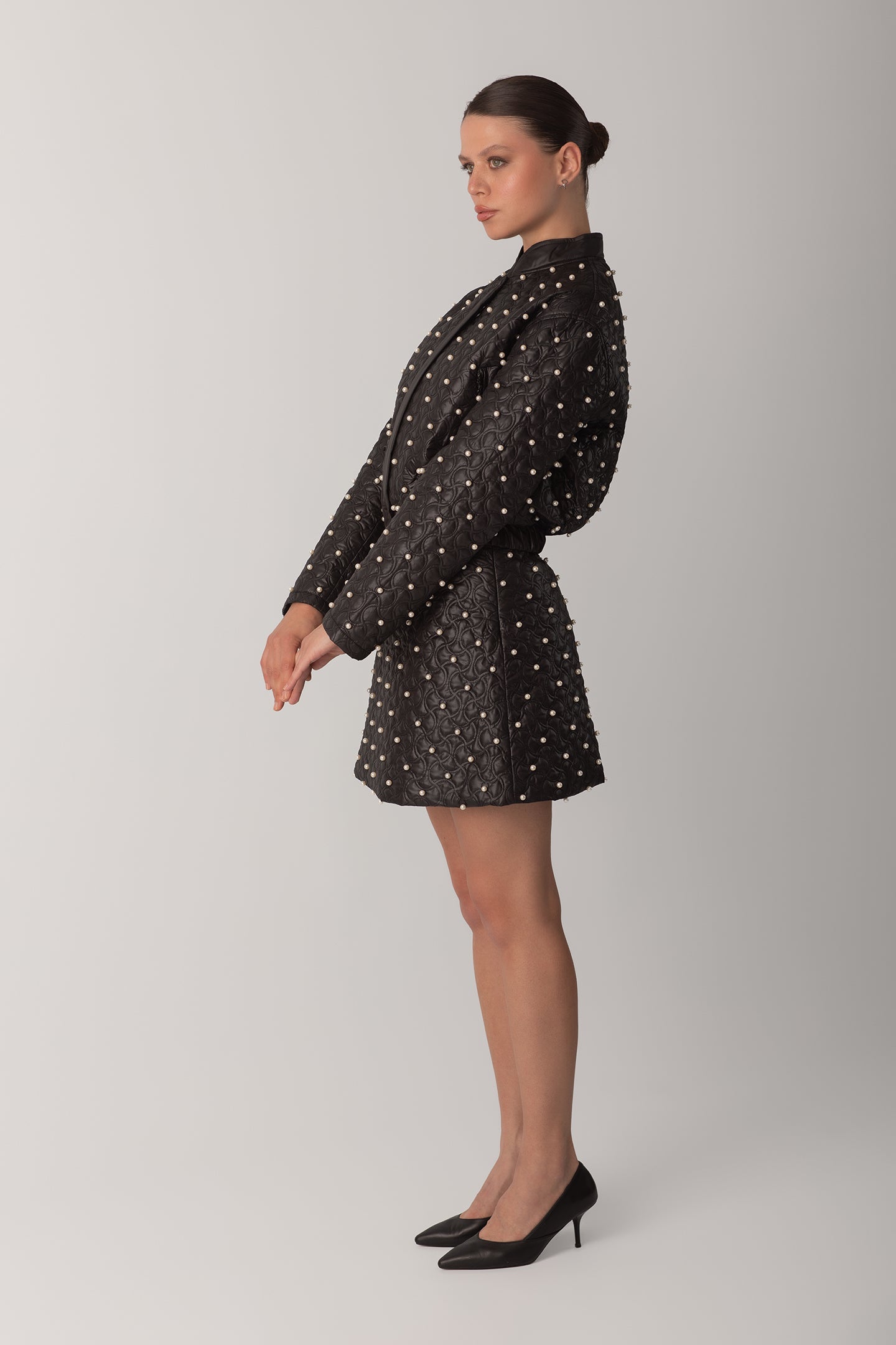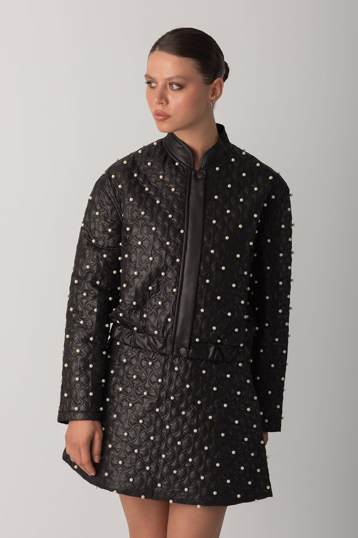 İNCİLİ KAPİTONE CEKET - SİYAH
