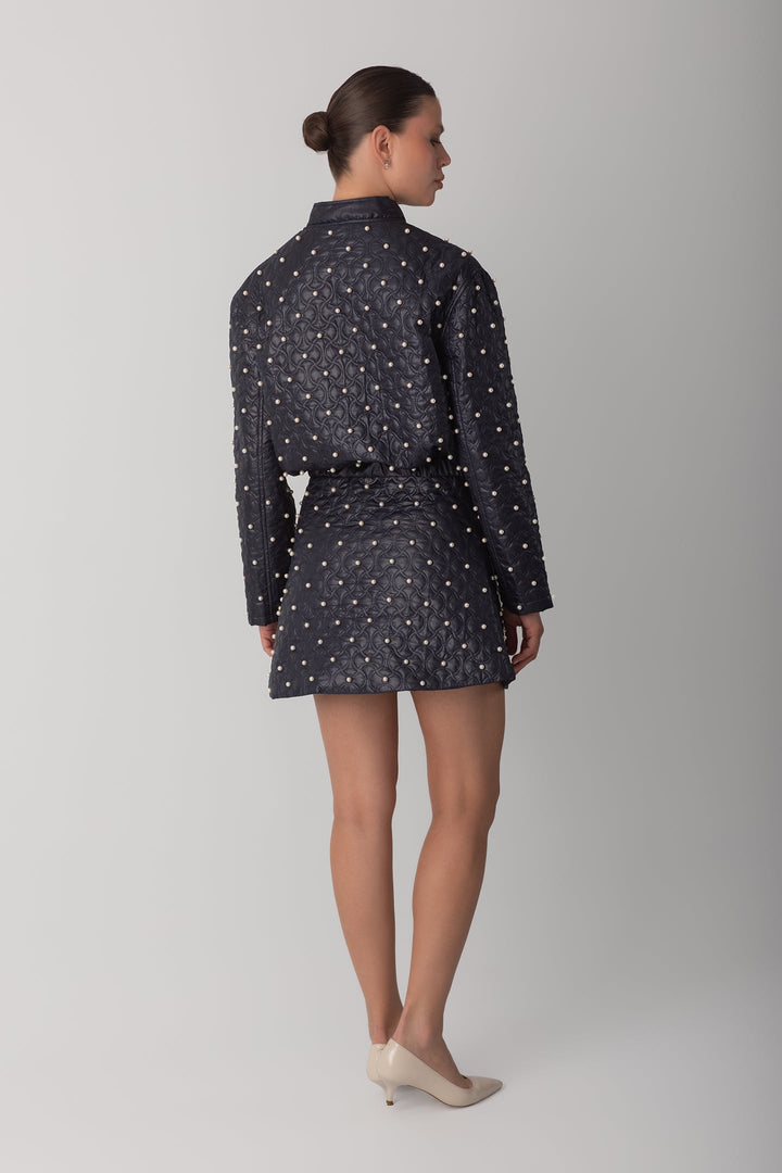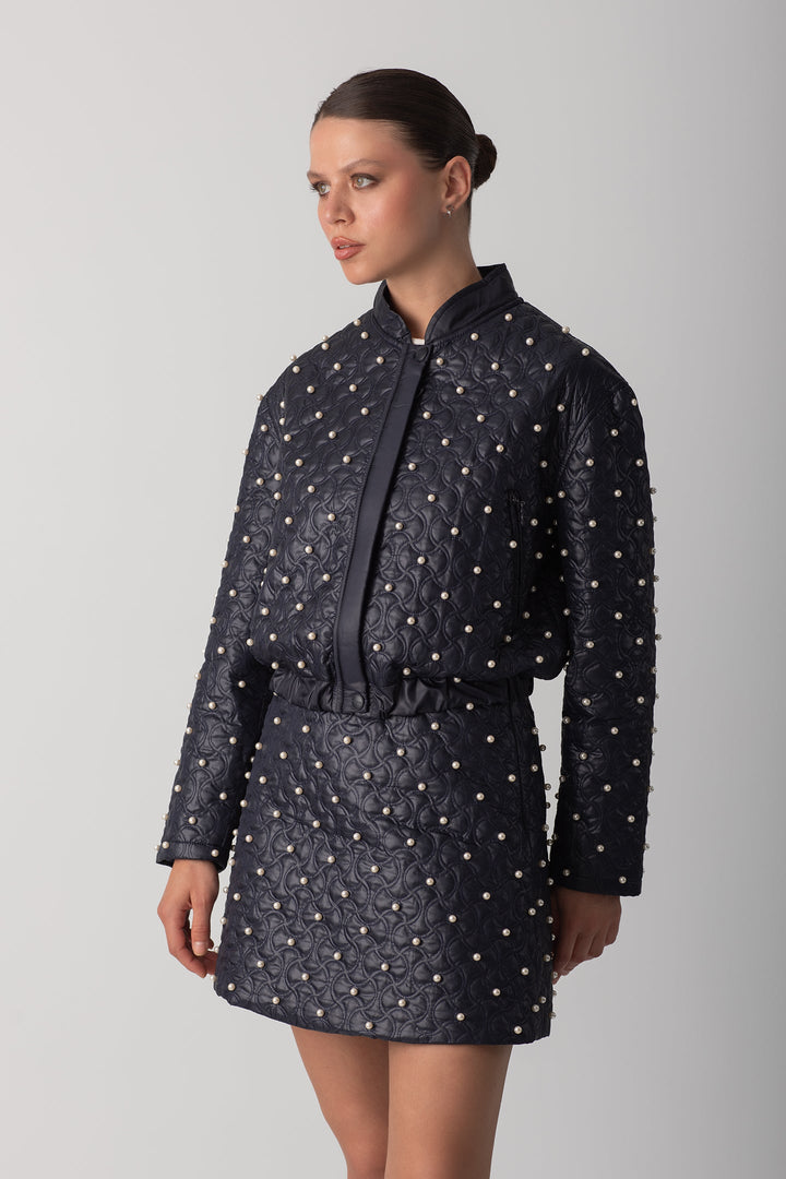 İNCİLİ KAPİTONE CEKET - LACİVERT