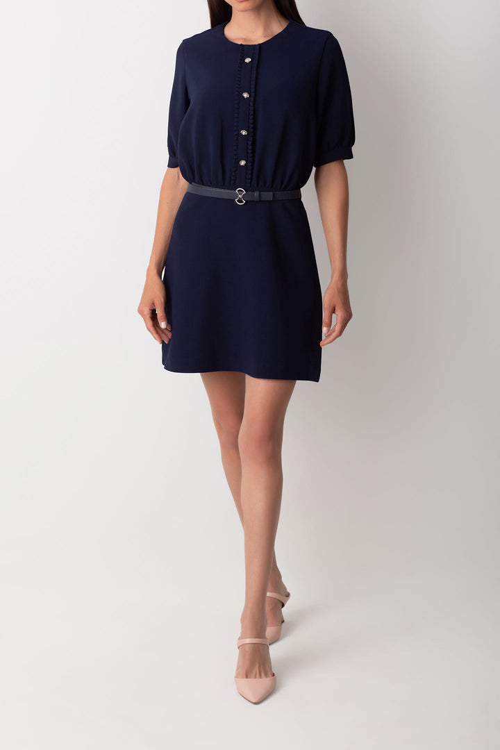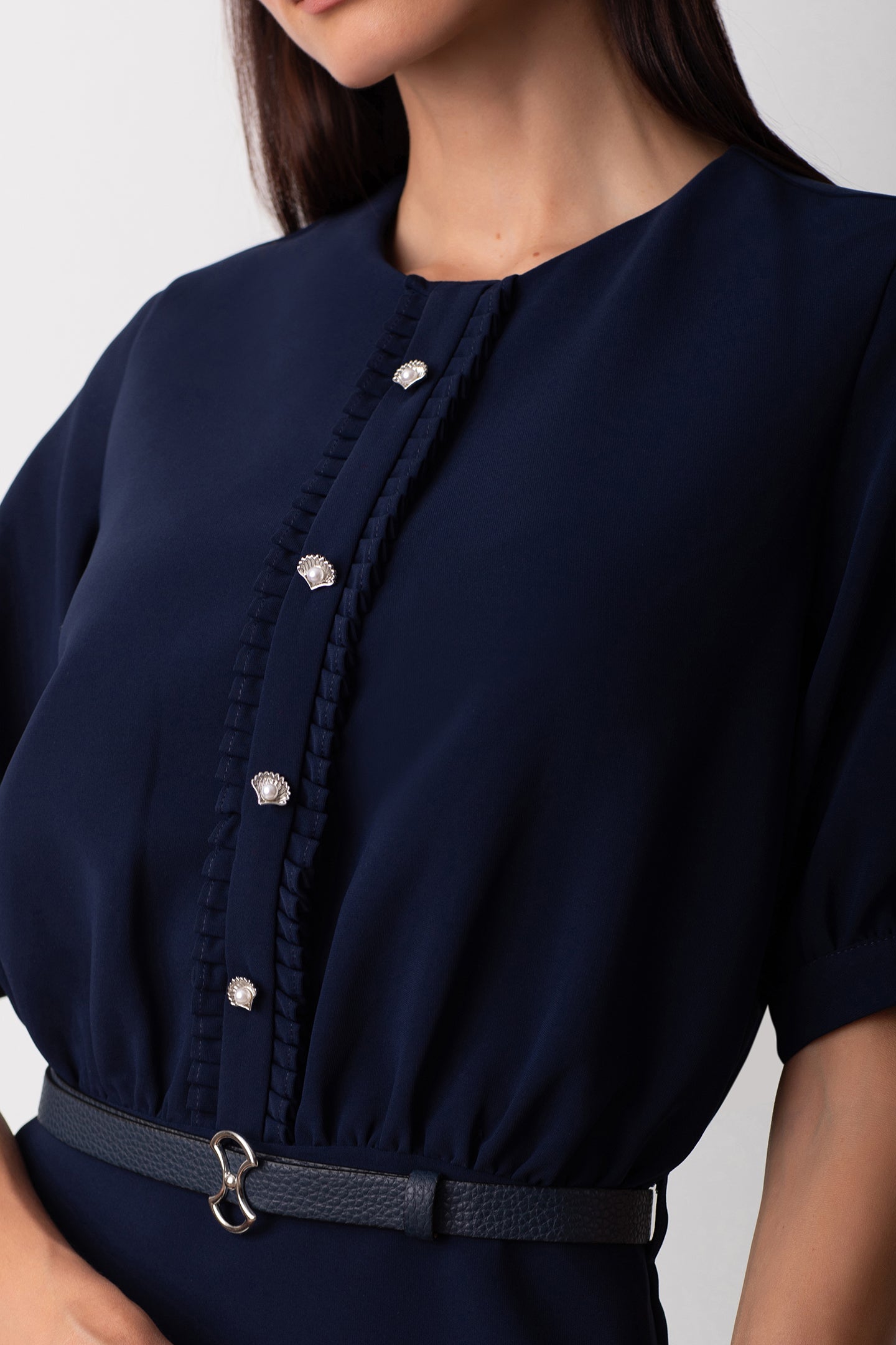 FIRFIR SÜSLEMELİ LACİVERT ELBİSE