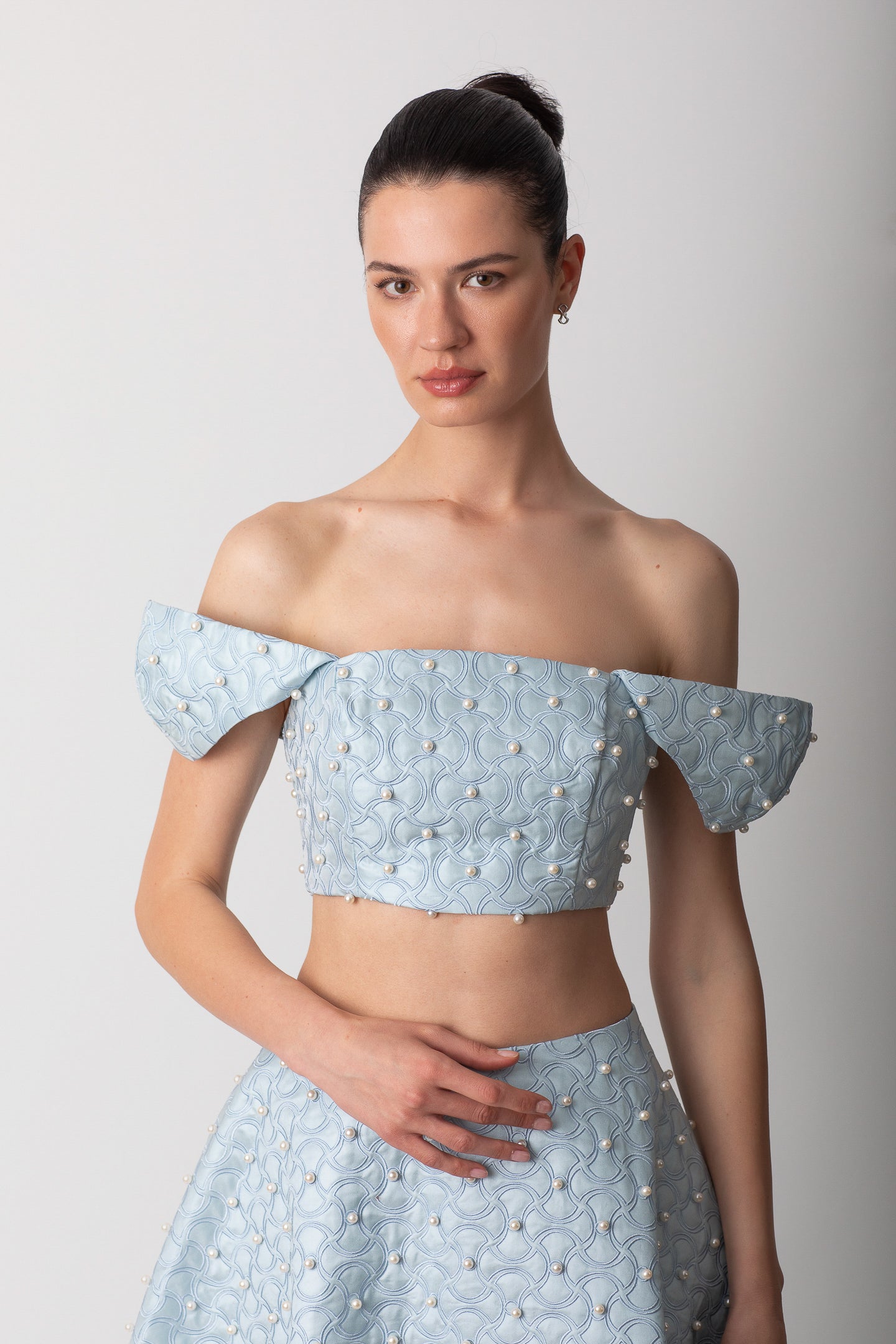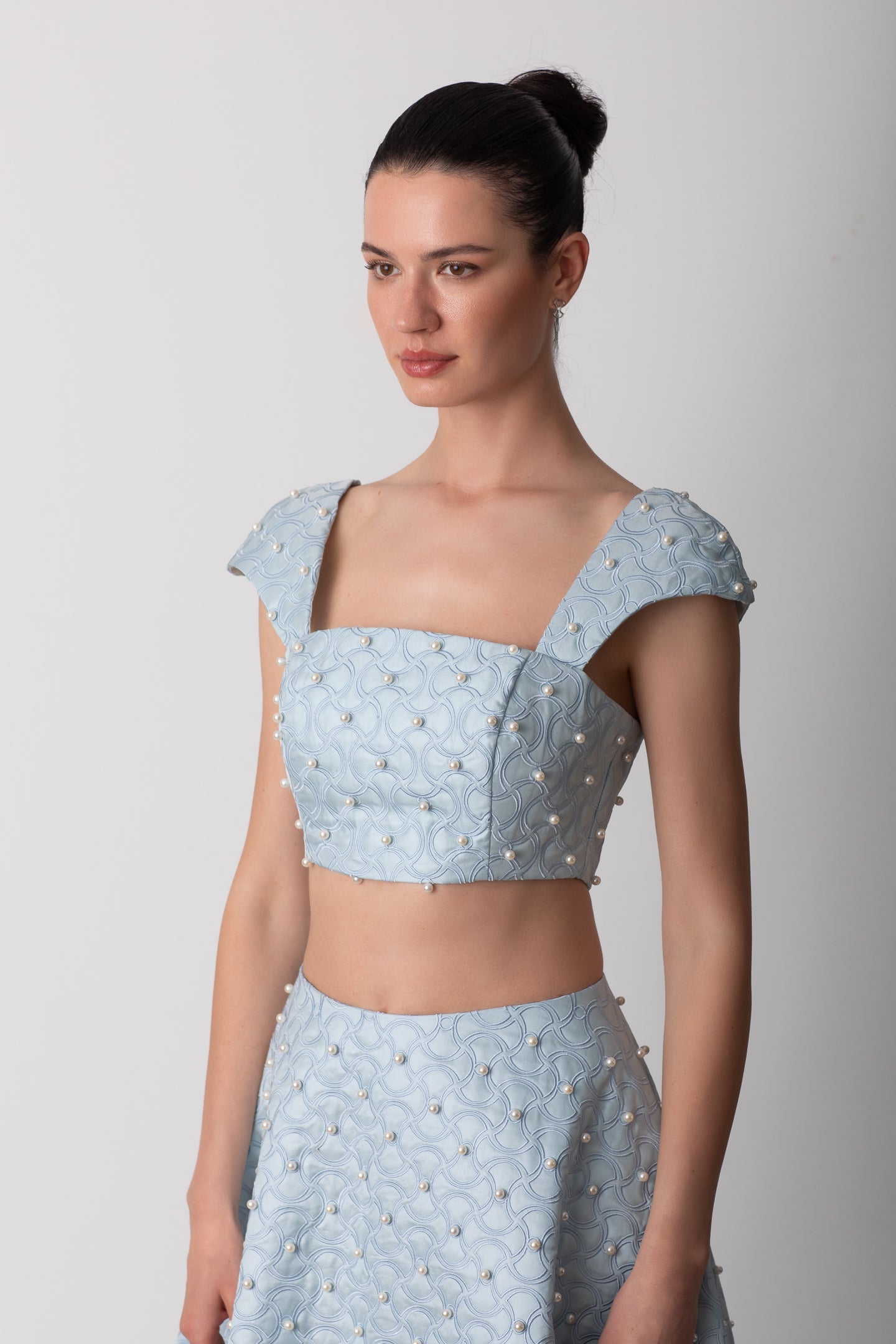 ŞANTUG İNCİLİ KOL DETAYLI MAVİ BÜSTİYER