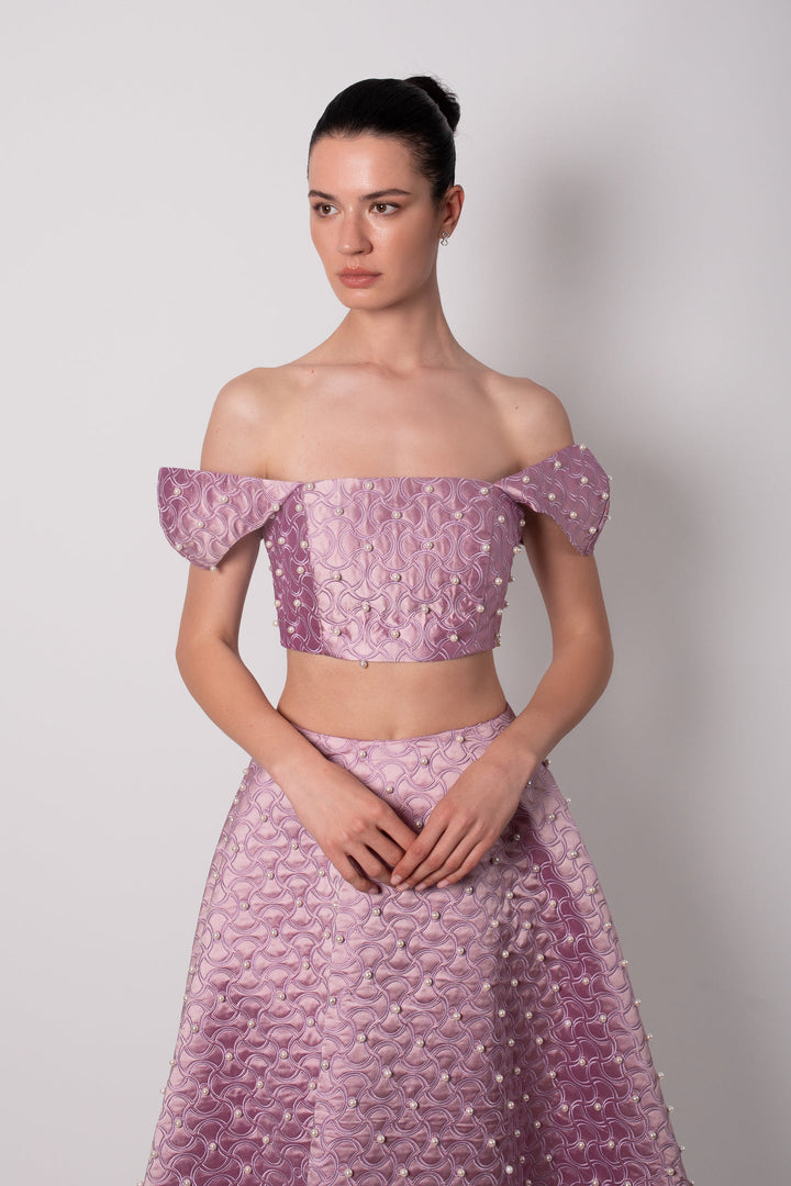ŞANTUG İNCİLİ KOL DETAYLI MOR BÜSTİYER