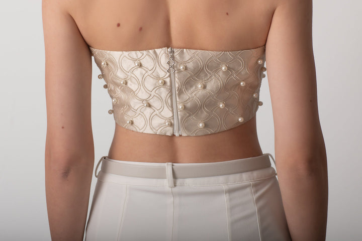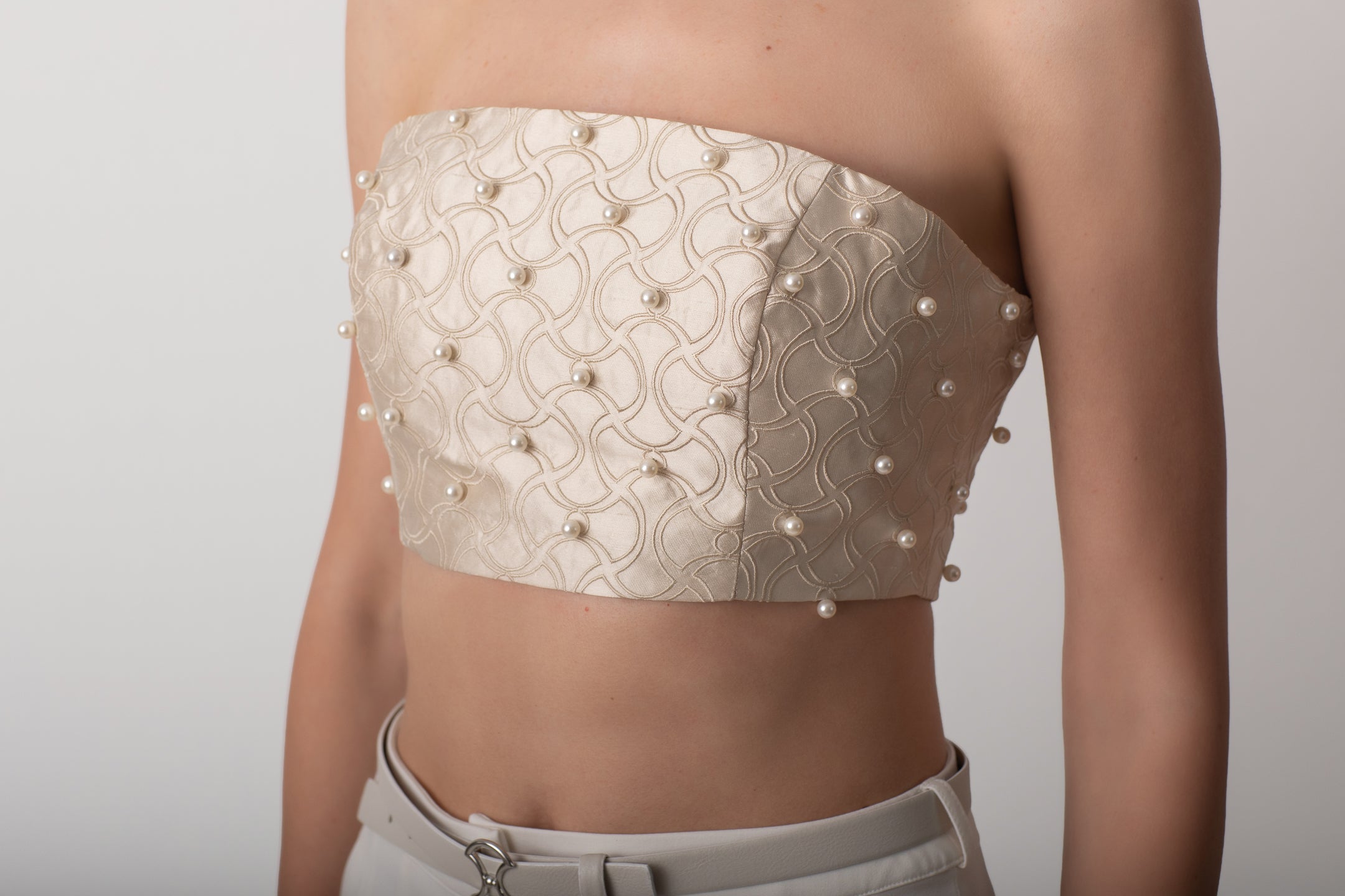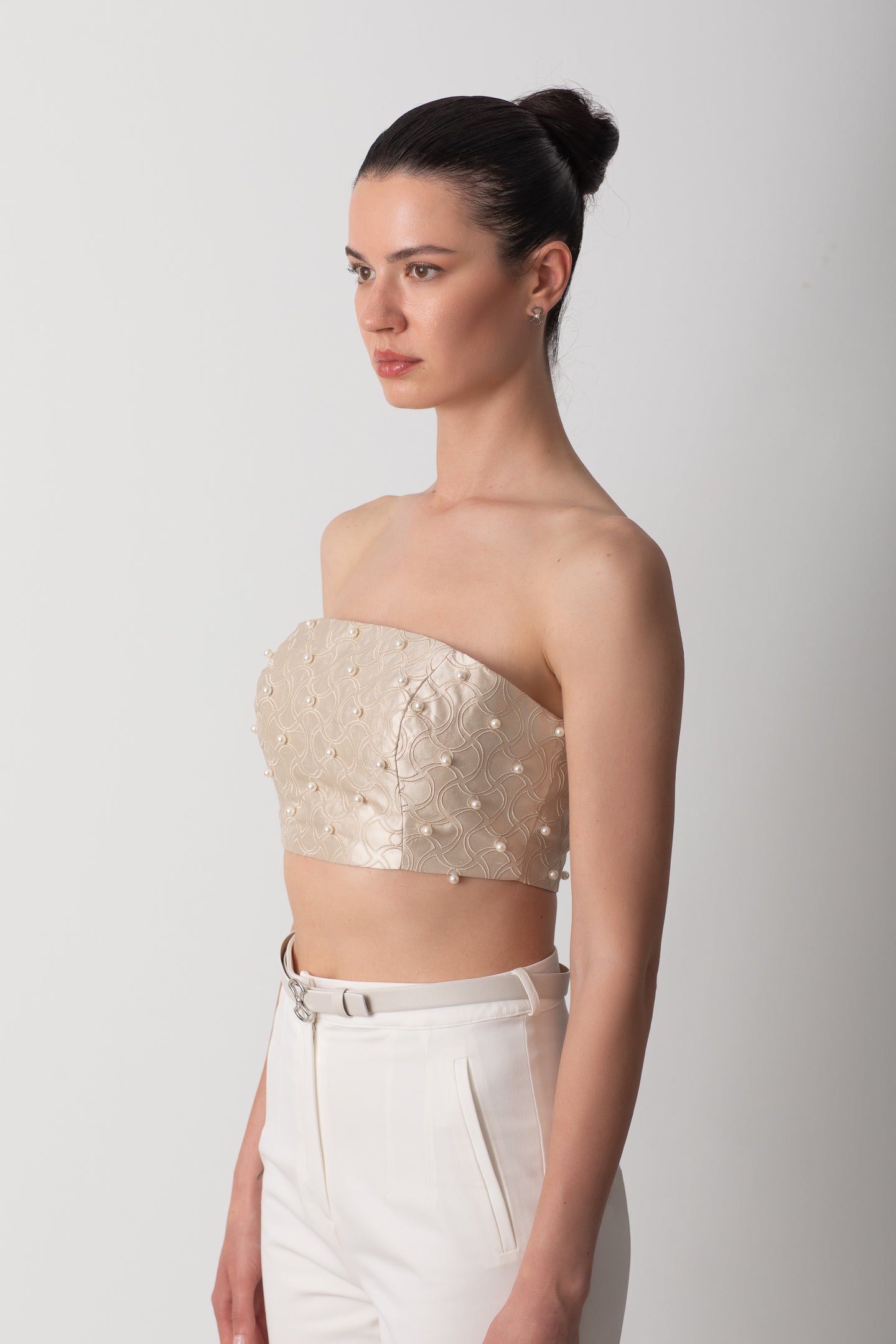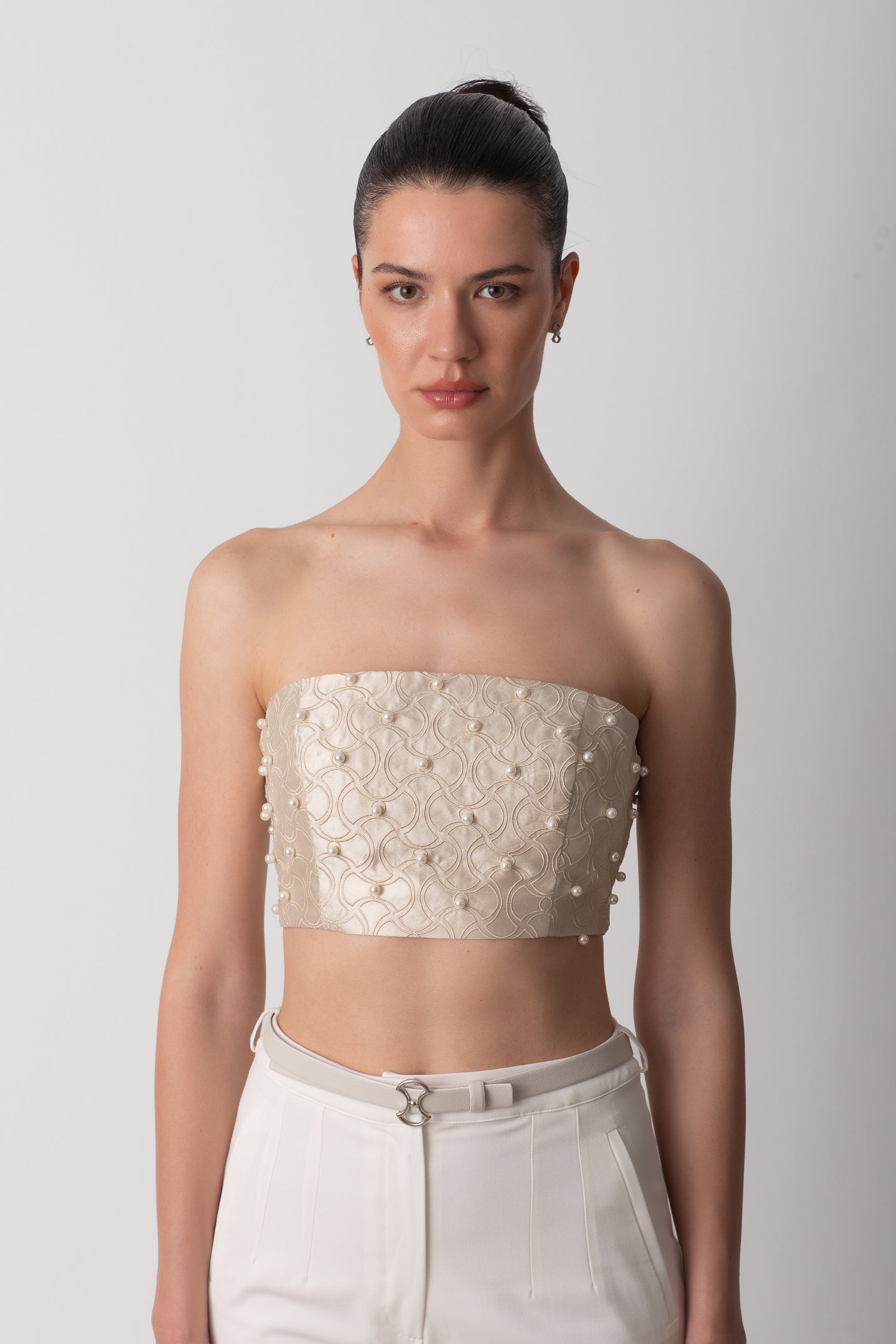 ŞANTUG İNCİLİ STRAPLEZ KREM BÜSTİYER
