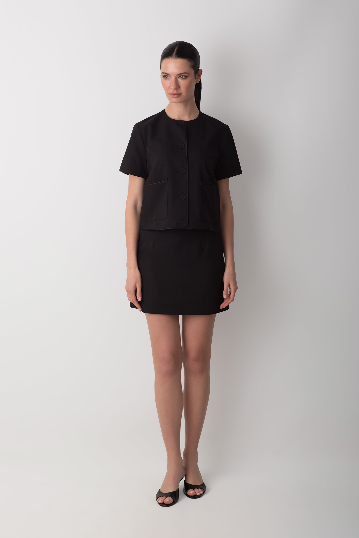 KISA KOLLU SİYAH CEKET