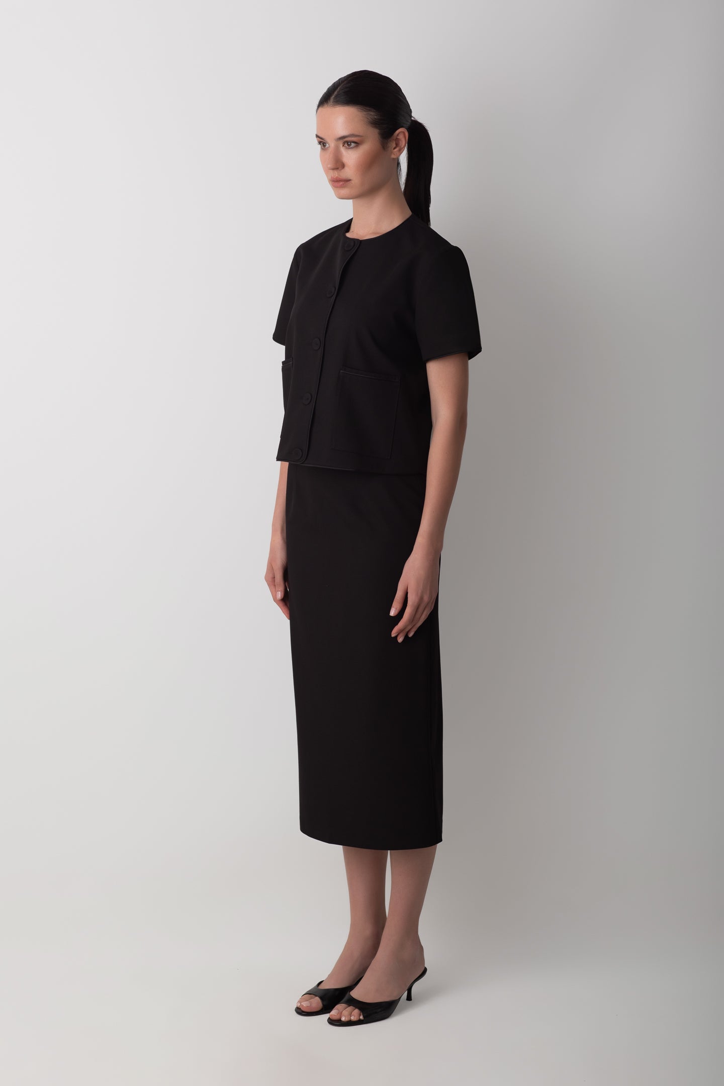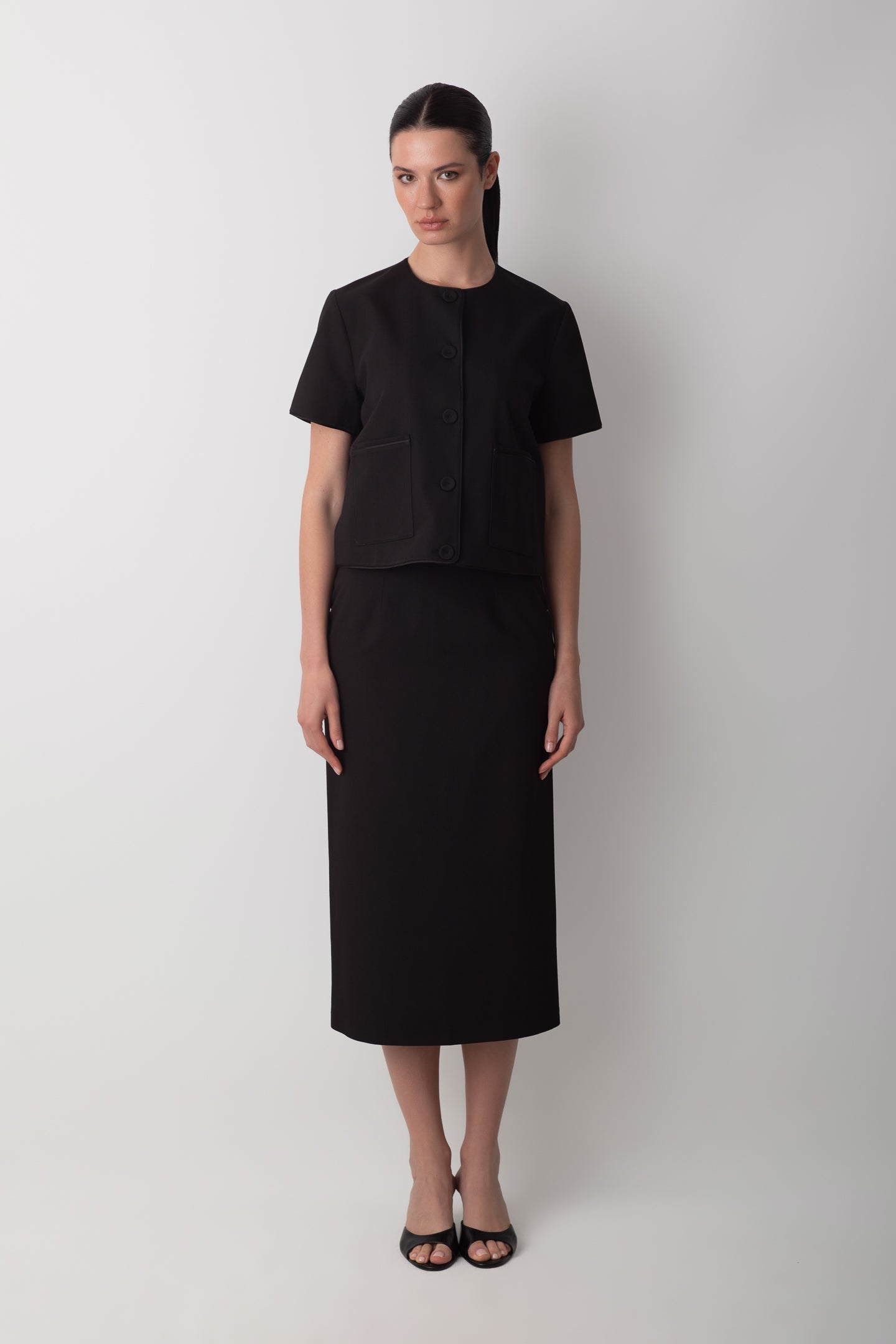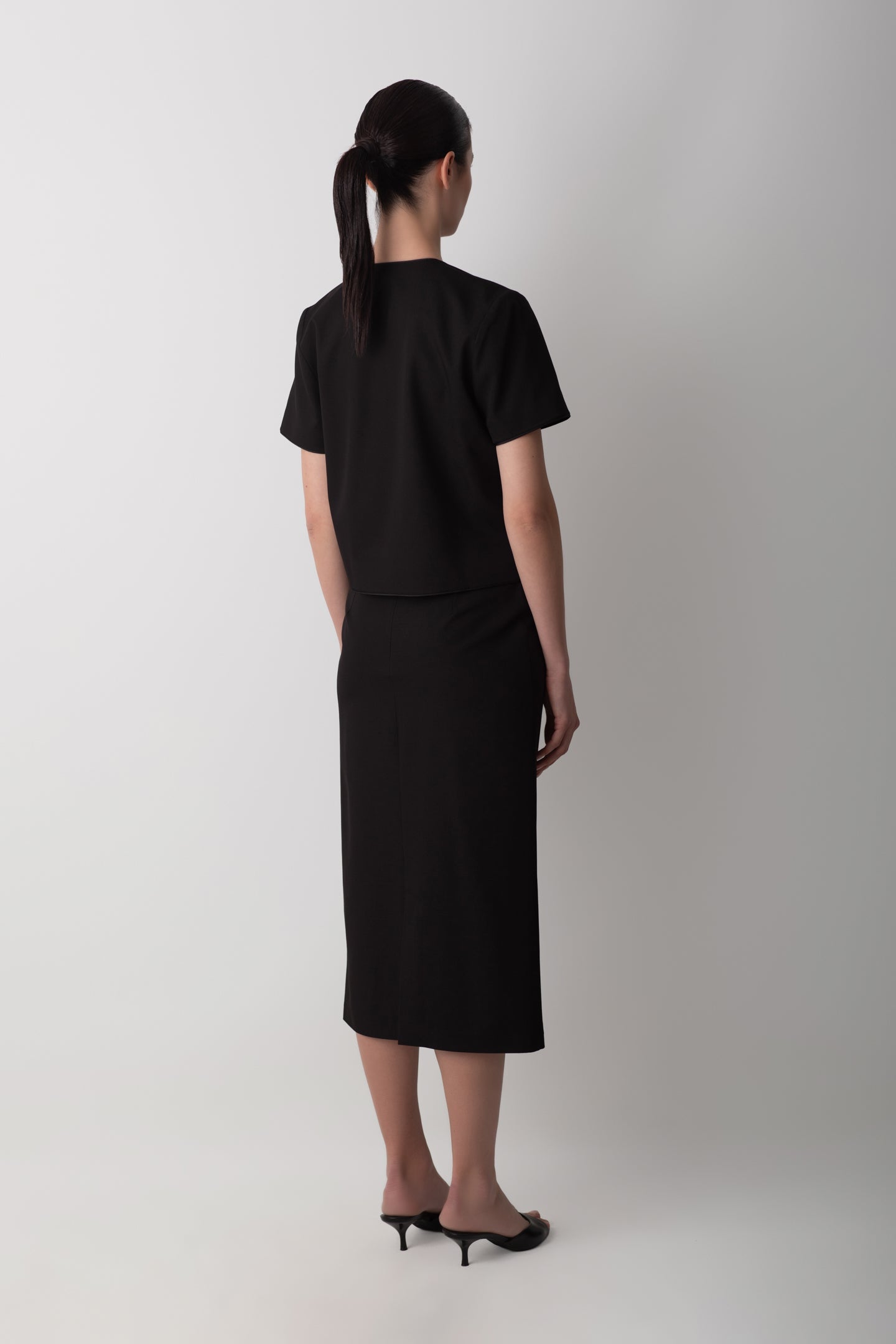 MİDİ KALEM YIRTMAÇ DETAYLI SİYAH ETEK