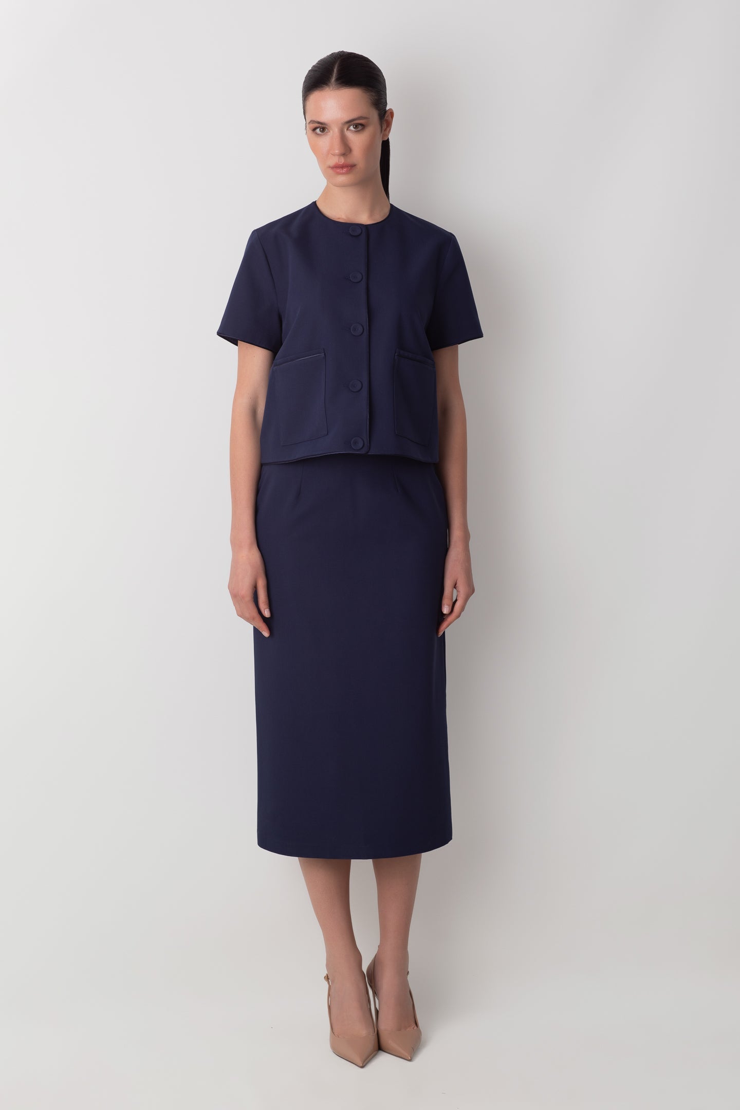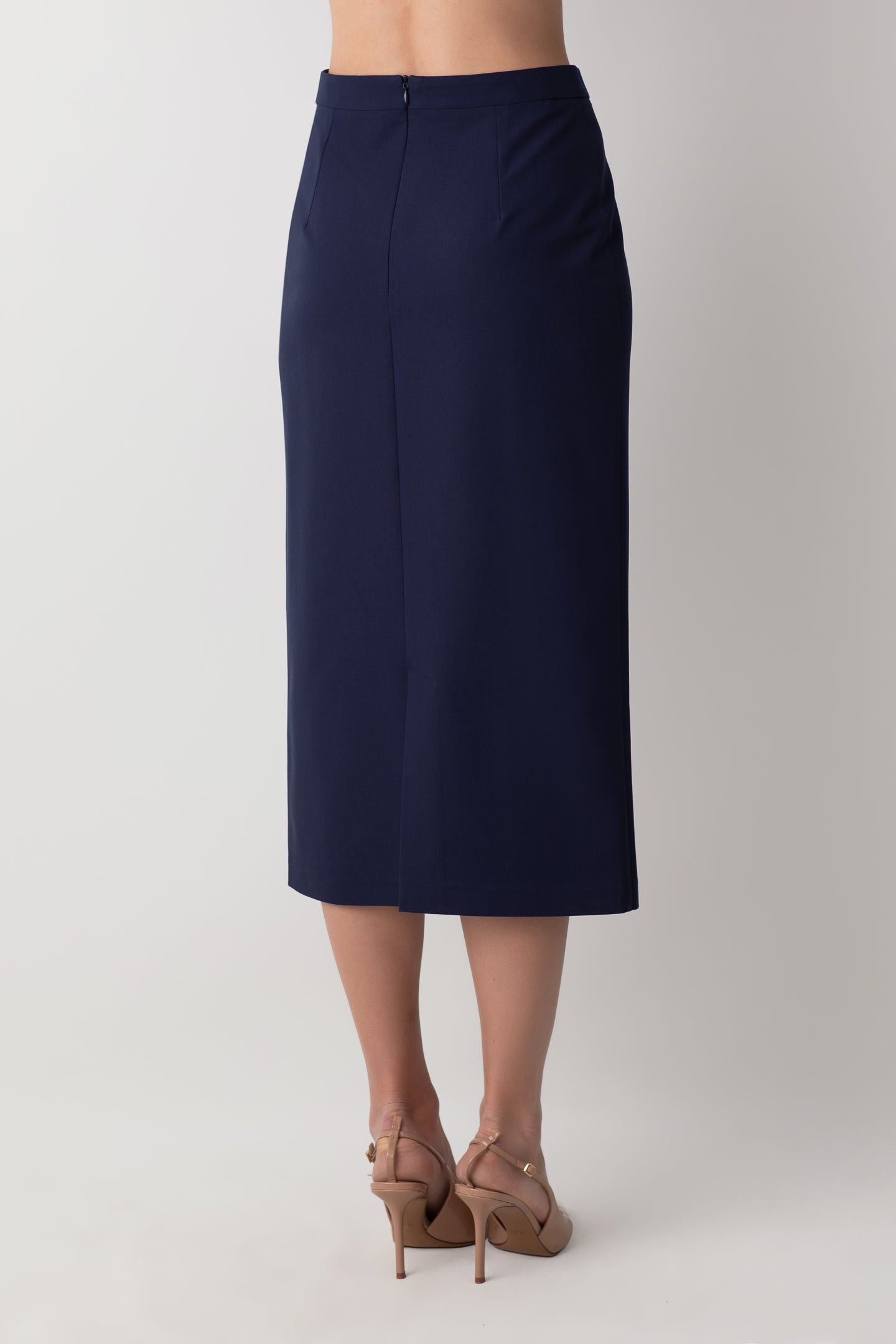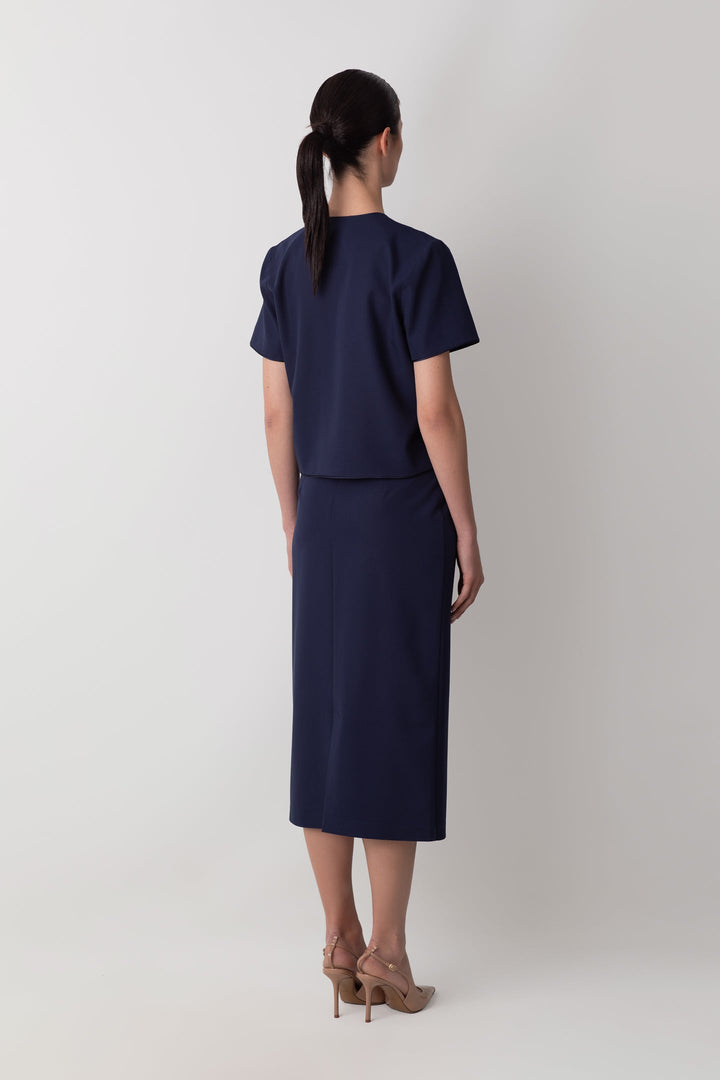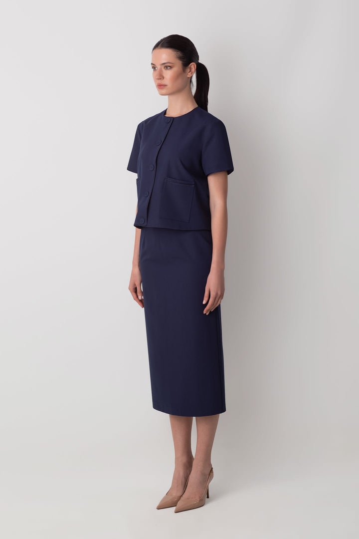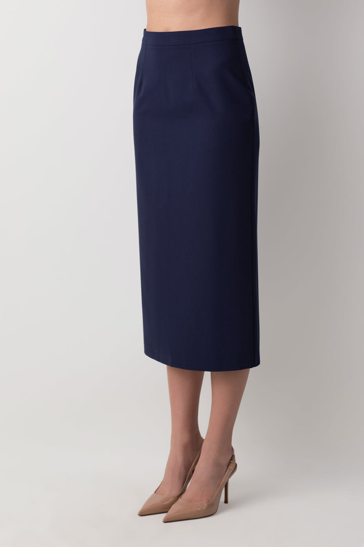 MİDİ KALEM YIRTMAÇ DETAYLI LACİVERT ETEK