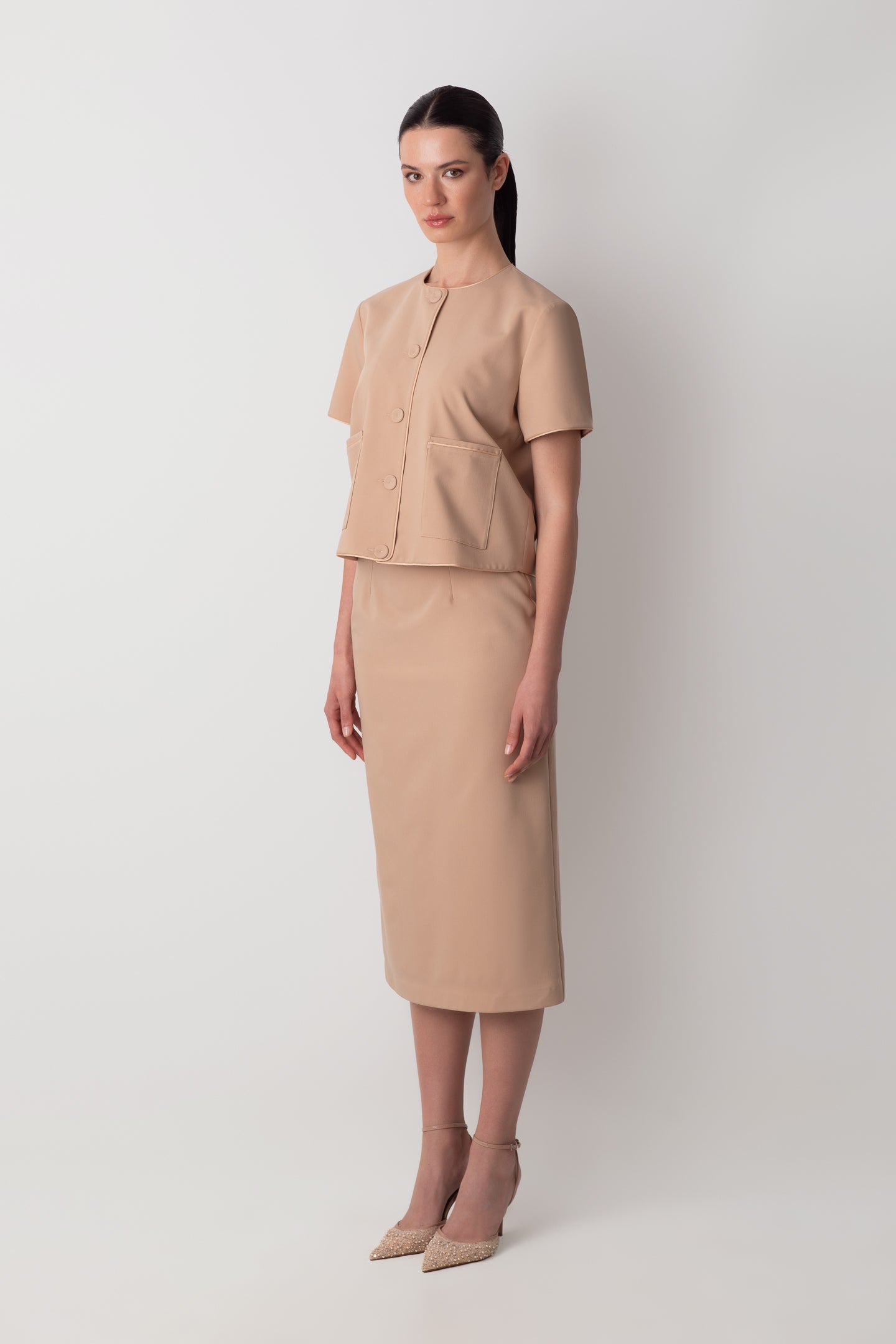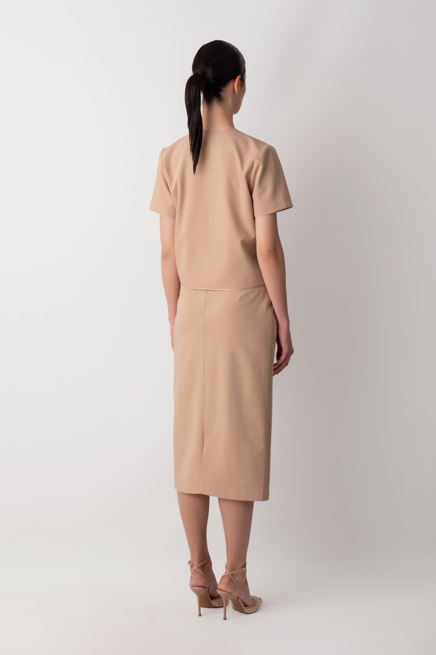 MİDİ KALEM YIRTMAÇ DETAYLI SÜTLÜ KAHVE ETEK
